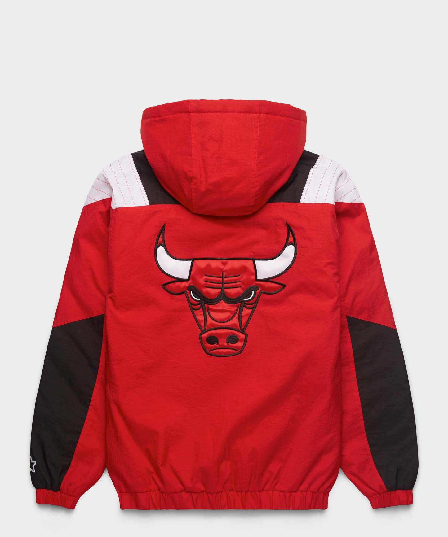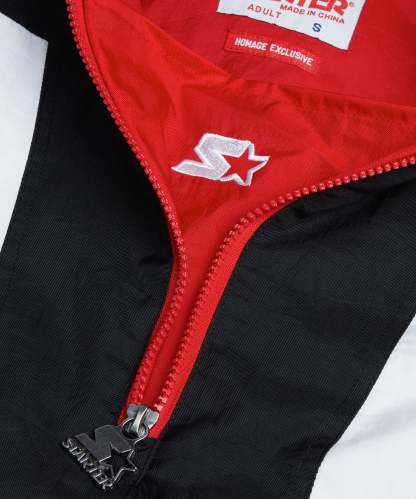 The ultimate outerwear look is here: the HOMAGE x Starter NBA Bulls Pullover Jacket. Half-zip collar, adjustable hood, classic kangaroo pocket, and Chicago colors combine for a retro piece like none other. Swish!