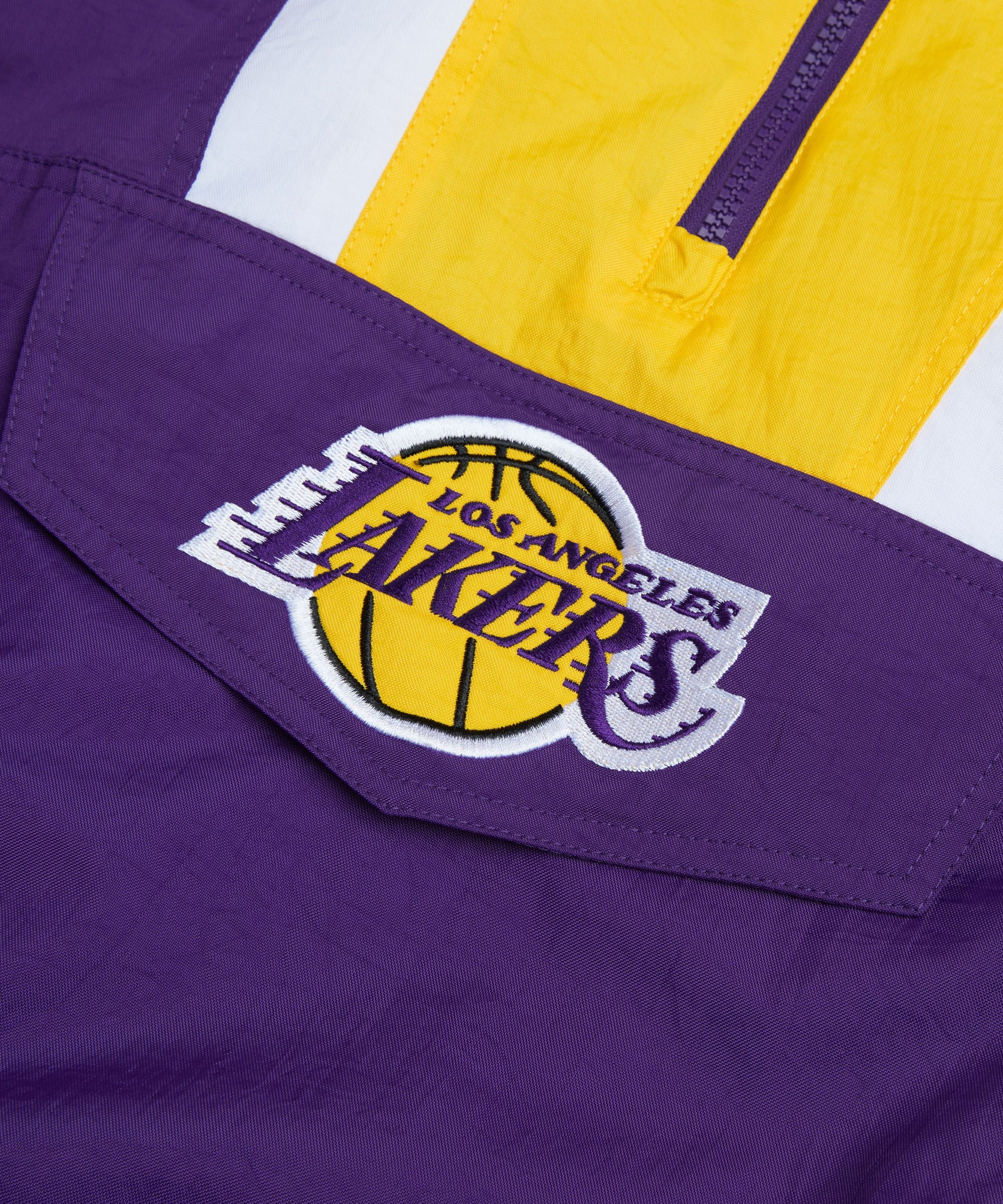The ultimate outerwear look is here: the HOMAGE x Starter NBA Lakers Pullover Jacket. Half-zip collar, adjustable hood, classic kangaroo pocket, and Los Angeles colors combine for a retro piece like none other. Swish!
