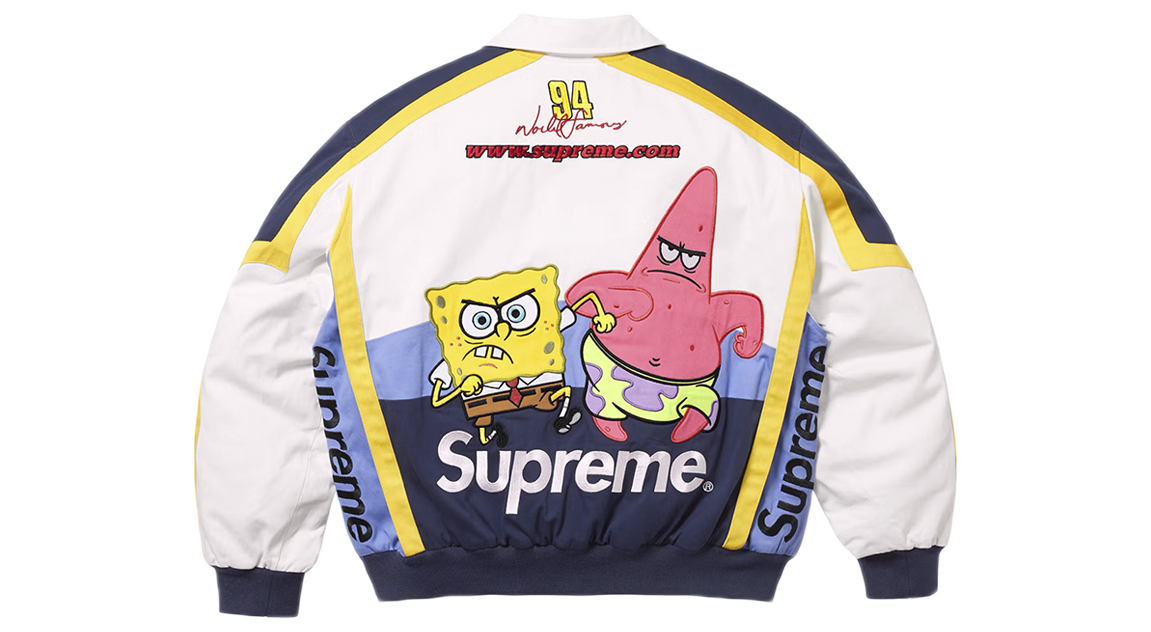 Supreme x SpongeBob SquarePants Jeff Hamilton Racing Jacket White
