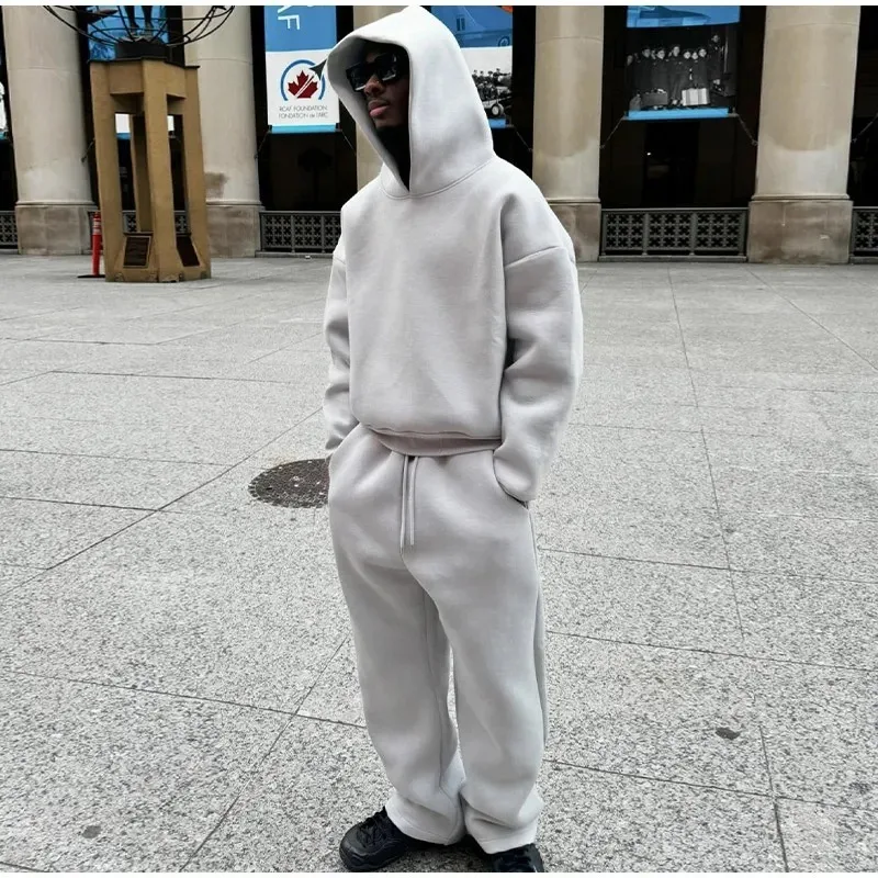 Men's Oversized Fleece Tracksuit 2-Piece Set Loose Hoodie & Jogger Pants Streetwear Casual Loungewear for Daily Wear
