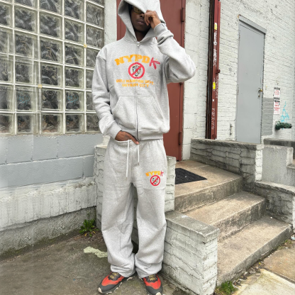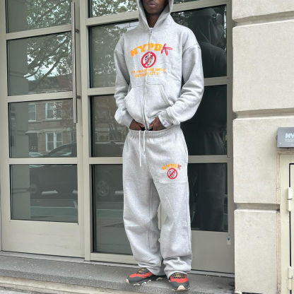 Casual Print Sweatshirt Hoodie Two-Piece Set