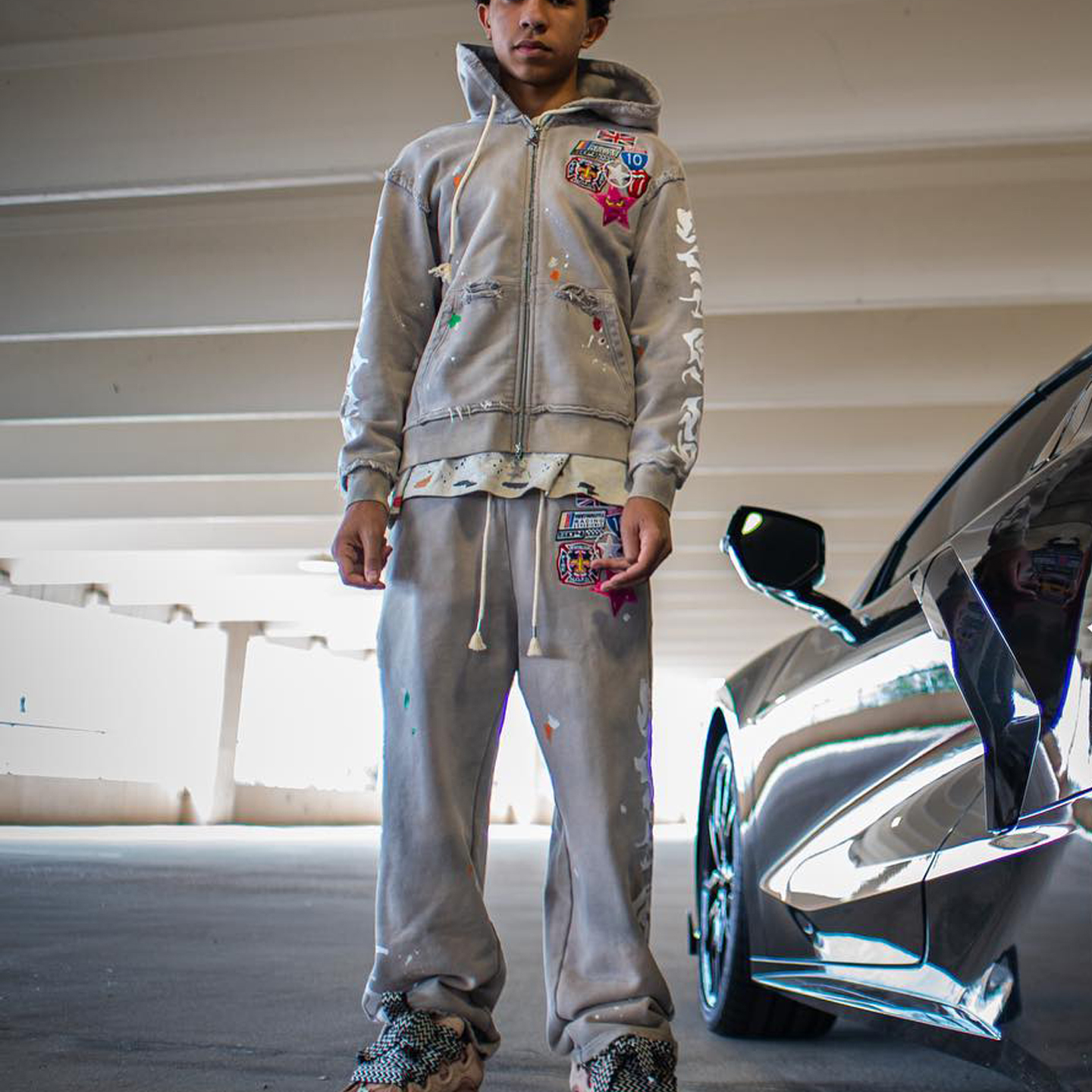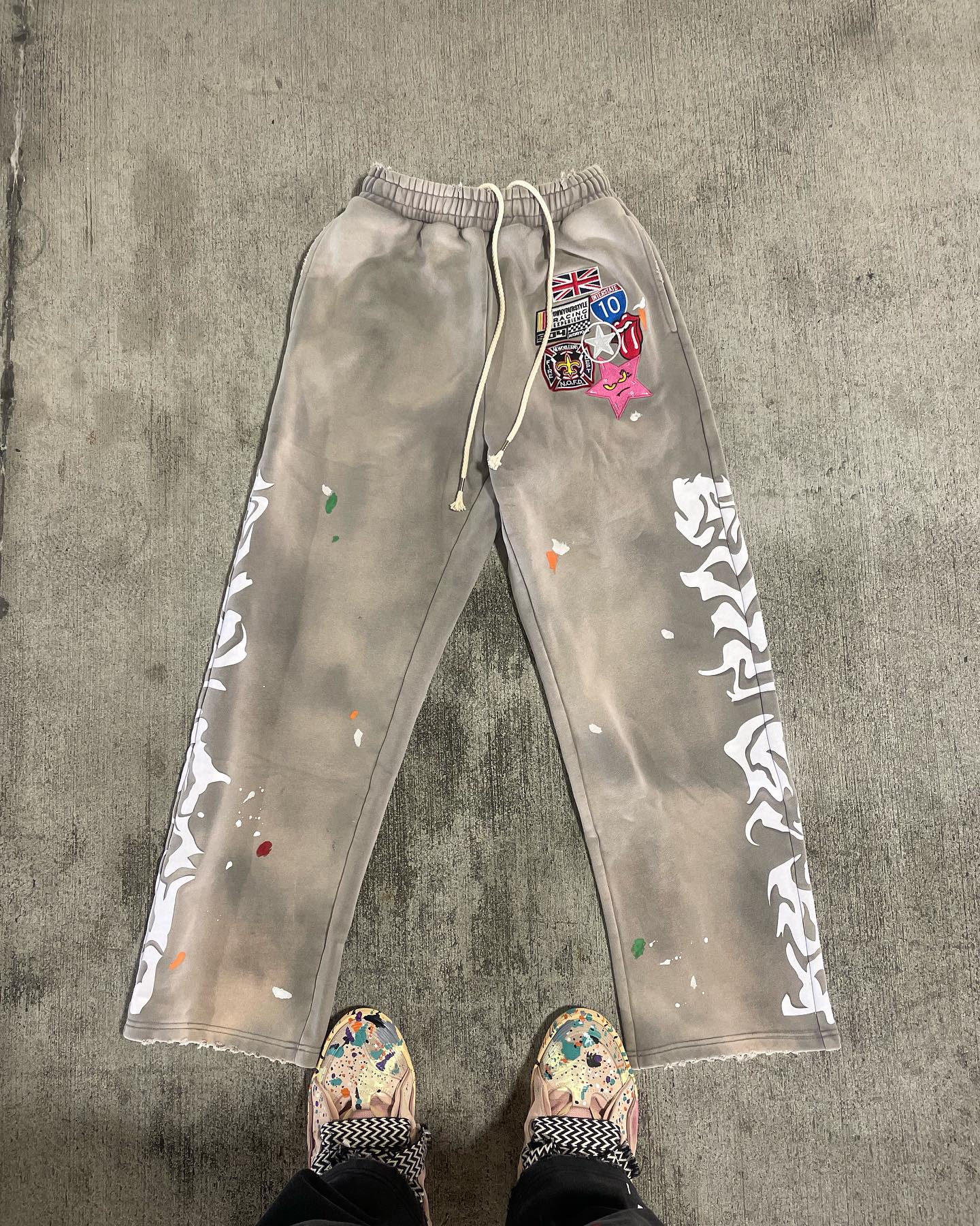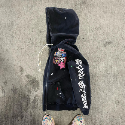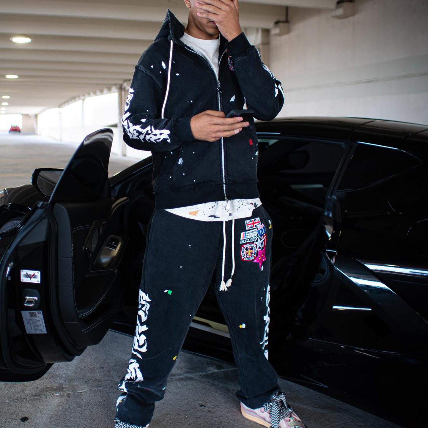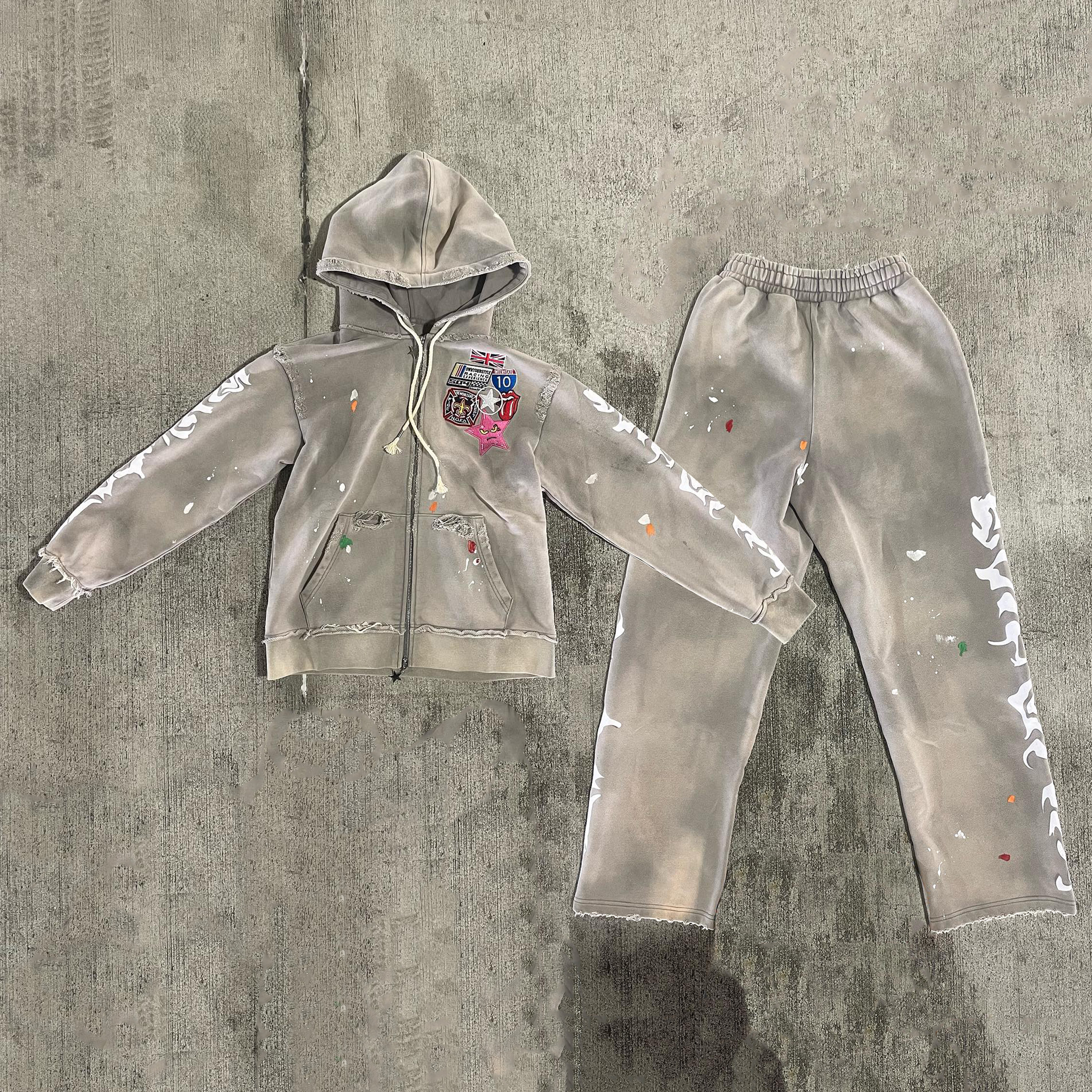 Casual retro graffiti sports hoodie and trousers two-piece suit