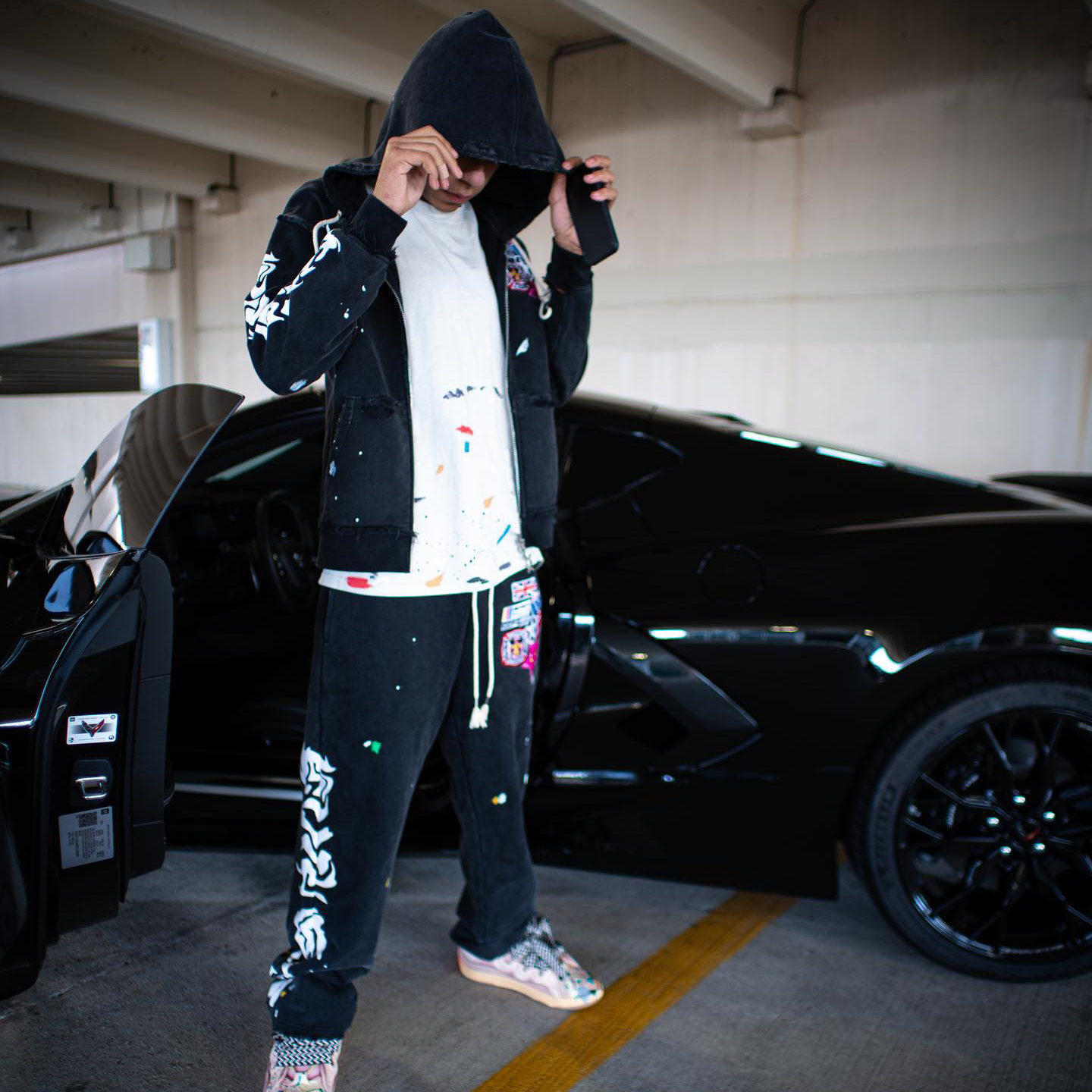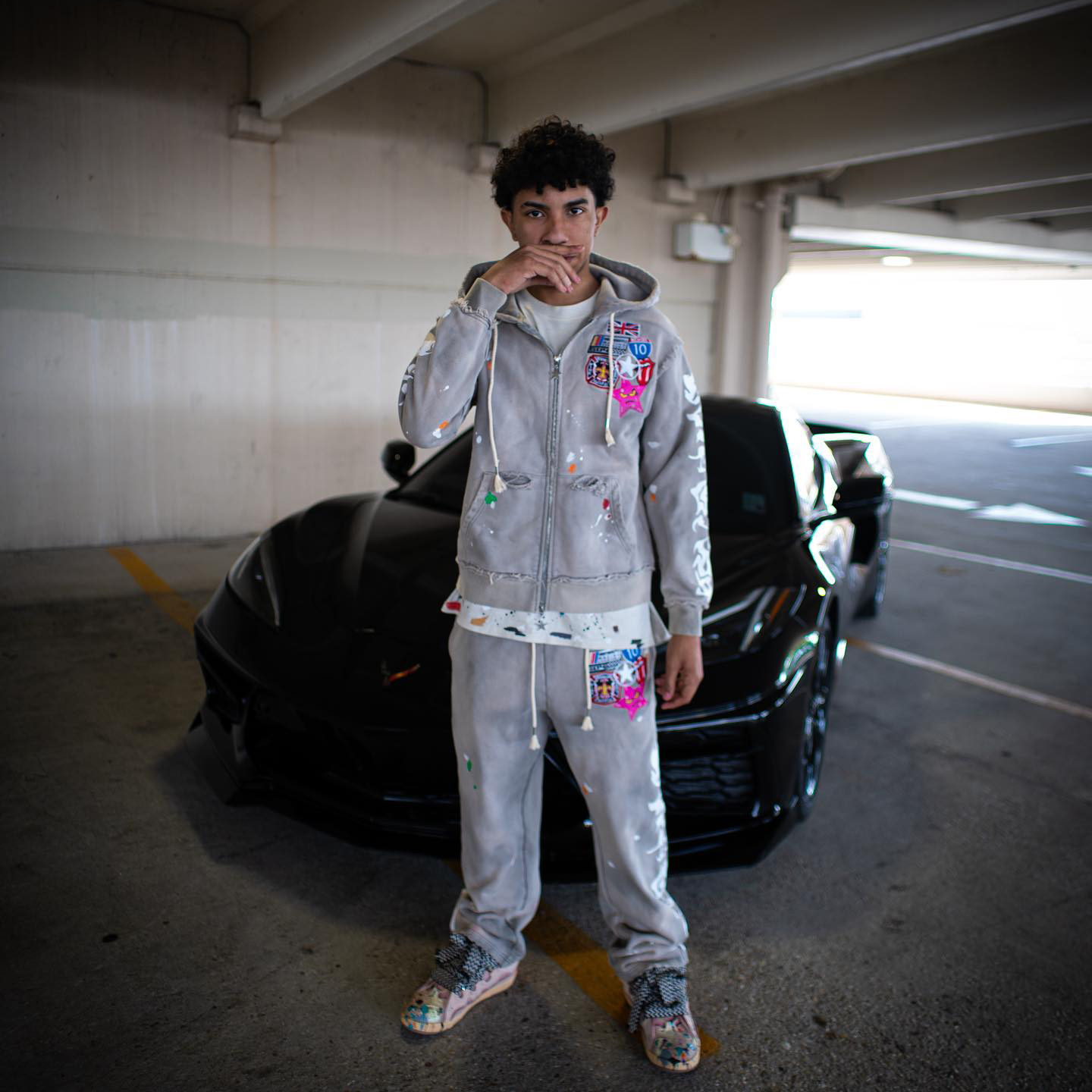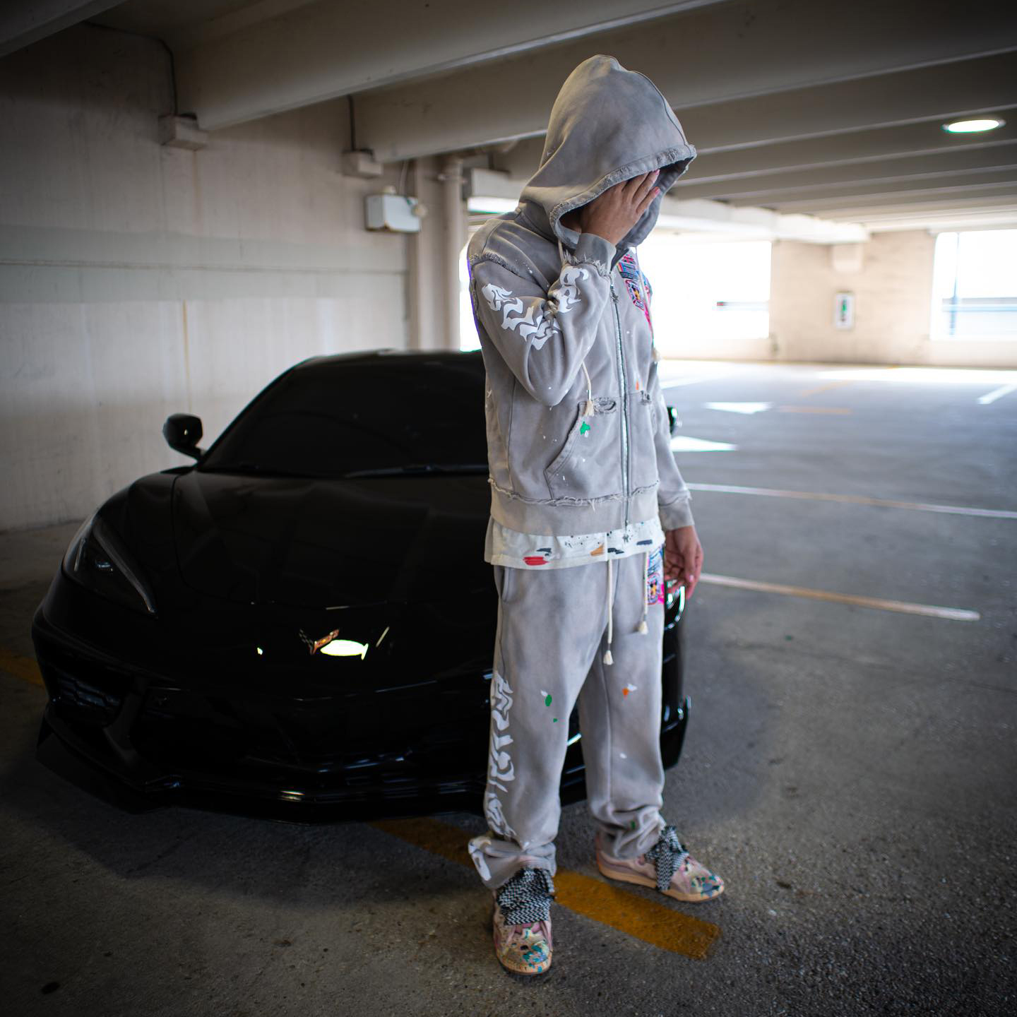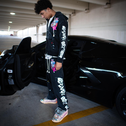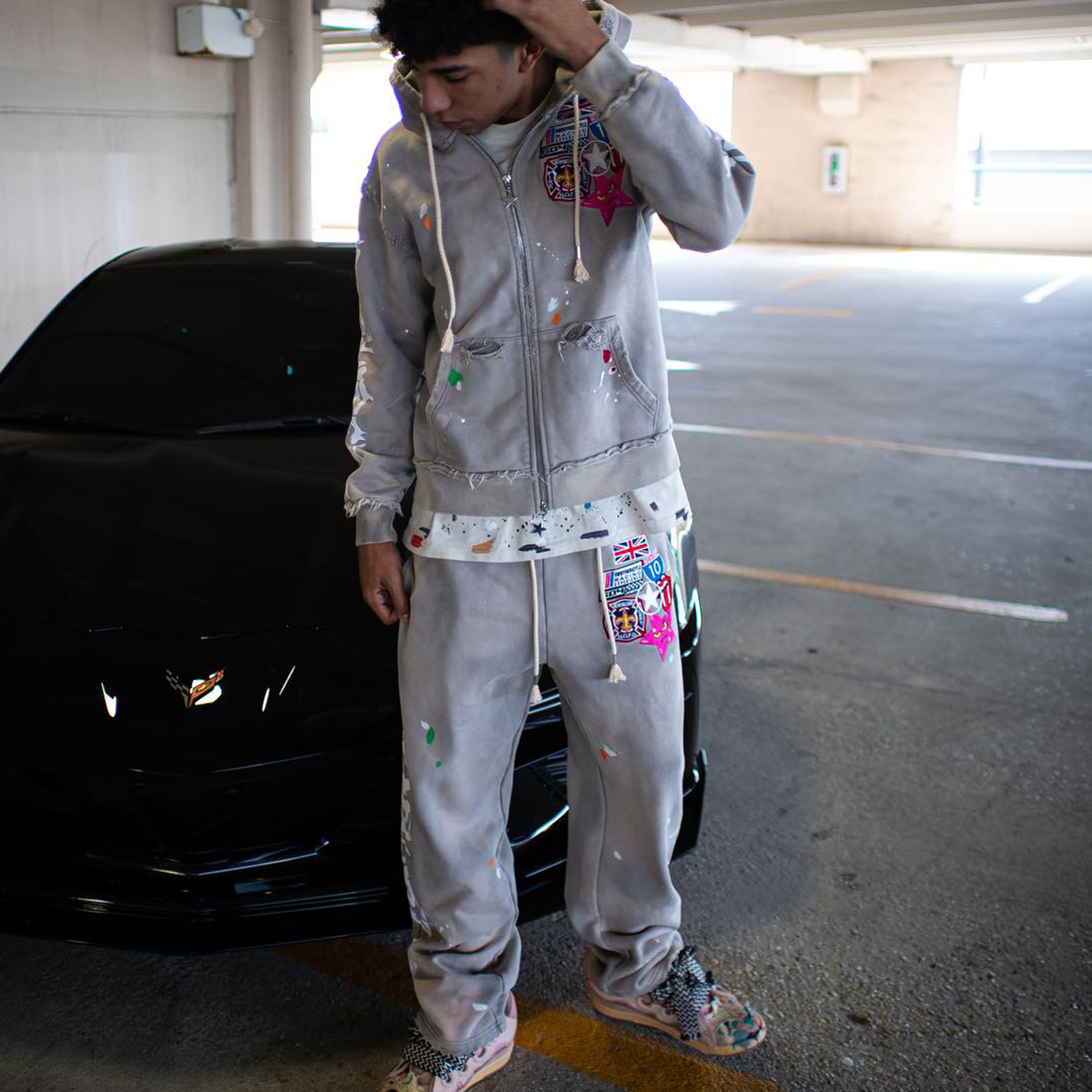 Casual retro graffiti sports hoodie and trousers two-piece suit