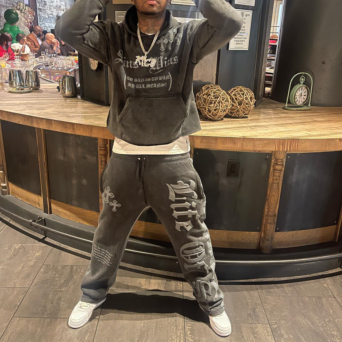 Retro Street Style Printed Hoodie Set