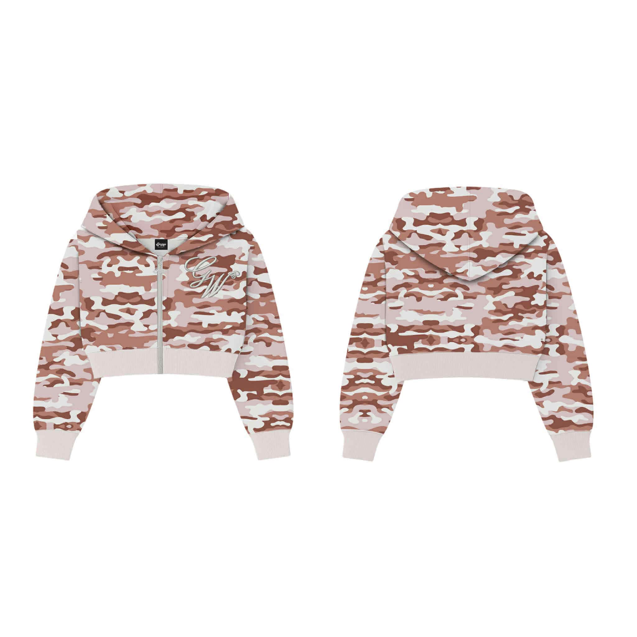 CAMOU PINK CROP HOODIE